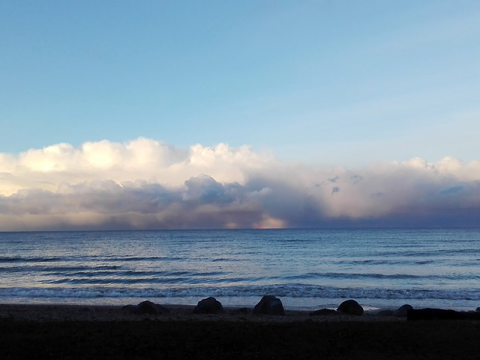 И вот такой праздник получился, на несколько минут над морем на Севере открылся цветной портал, сияние, похожее на северное, прямо из тучи.